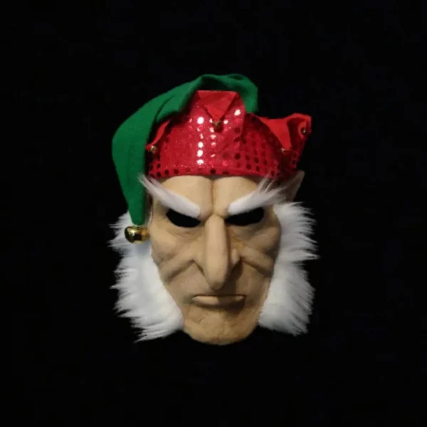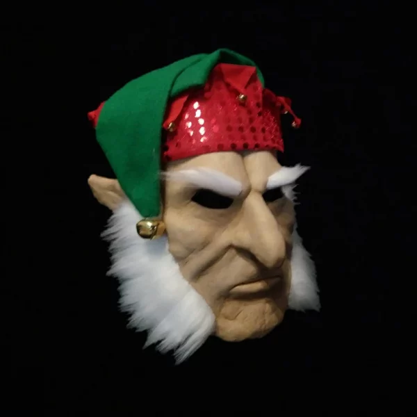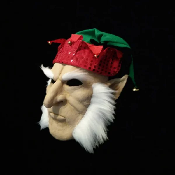 Latex Elf half mask with velcro straps. Made to order. Elf hat may vary slightly and is split in back to accommodate larger heads. Elf hat is also removable so mask can be used for Halloween too. Can be painted different colors.