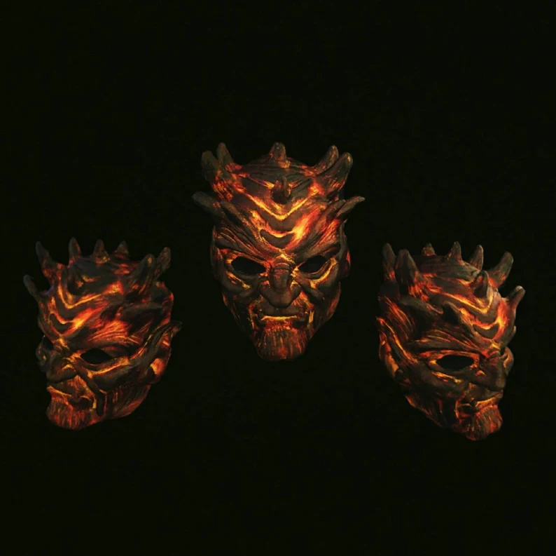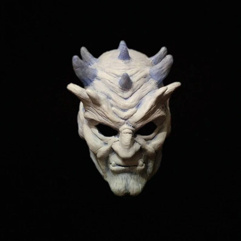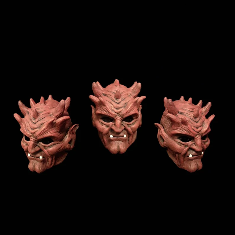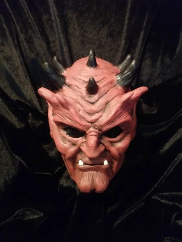 Latex demon/gargoyle half mask with velcro straps. Custom made to order. Can be painted other colors and can be made without mouth section.
